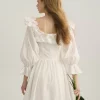 Ravel Pleated Mini Dress: Ruffled Ruffles, Lace-Up Square Neck, Long Puff Sleeves with Elastic Flared Cuffs, Hidden Back Zip