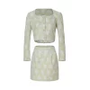 Lemon flower tweed set, graceful, elegant and feminine style Non-stretch tweed, Floral embroidery, Square collar with buttons, Concealed zipper at the back 100% polyester for lining