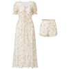 DRESS: Front slit , Hook-and-eye and secret zip at back , V neck and short puff sleeves 100% polyester for the lining